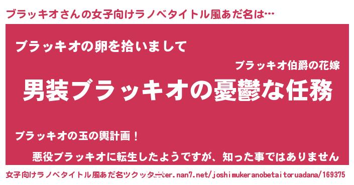 | 男性向けラノベタイトル風あだ名 | 『冴えないブラッキオの育てかた』 |