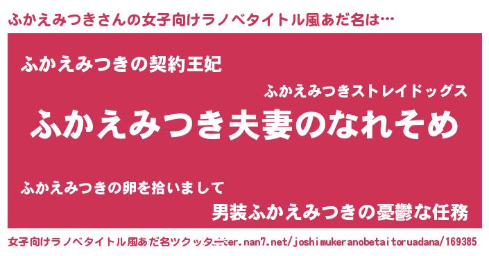 | ヘコむあだ名 | 『ふかえみつき(震え声)』『ふかっ子』 |