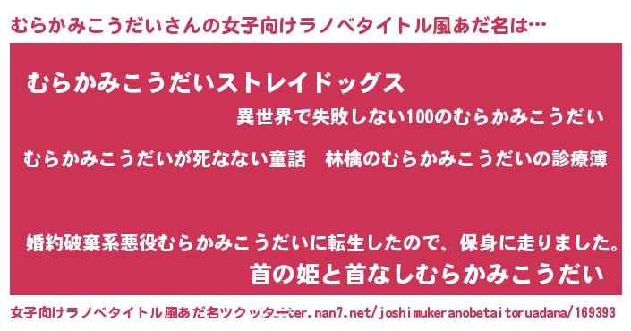 | 意味不明あだ名 | 『住所不定無職むらかみこうだい(65歳)』 |