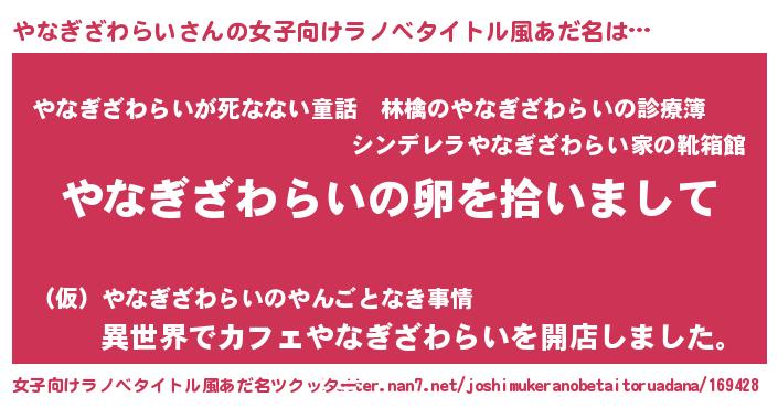 | 胡散臭い通販商品みたいなあだ名 | 『伝統あるサプリメント…その名も「やなぎざわらい」』 |