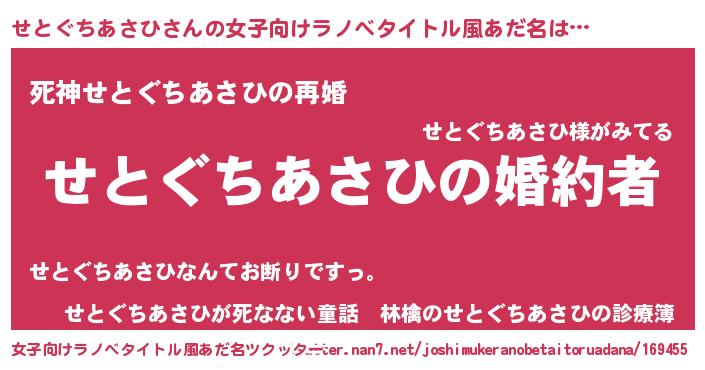 | 胡散臭い通販商品みたいなあだ名 | 『運命の人と巡り会える高級そうな絵画…その名も「せとぐちあさひ」』 |