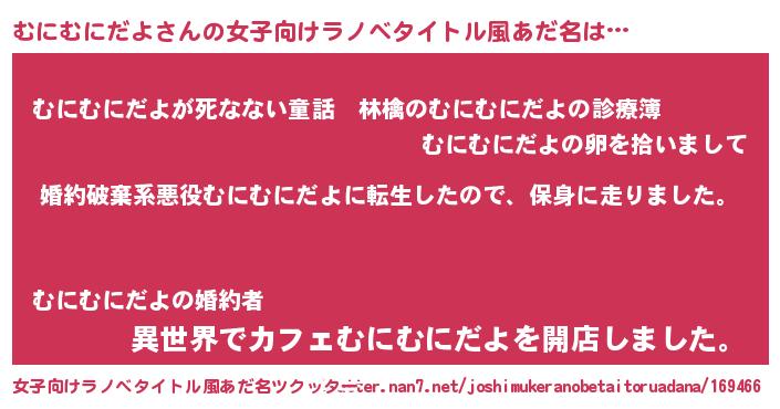 | 男性向けラノベタイトル風あだ名 | 『ムニムニダヨスレイヤー』 |