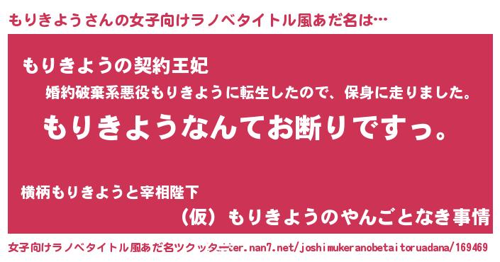 | 意味不明あだ名 | 『自称もりきよう』『永久保存もりきよう』 |