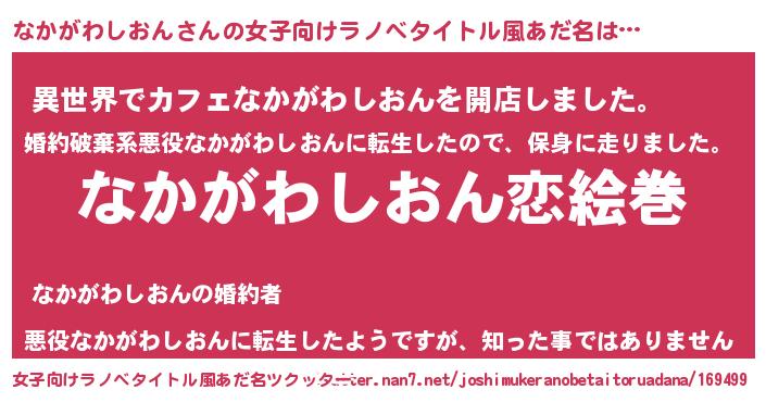| 男性向けラノベタイトル風あだ名 | 『おまえをオタクにしてやるから、俺をなかがわしおんにしてくれ! 』 |