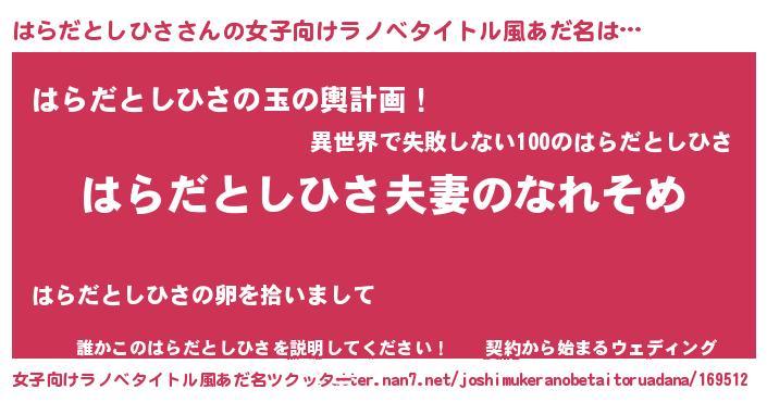 | ヒーロー風カッコイイあだ名 | 『正義の使者はらだとしひさ』 |