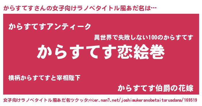 | 男性向けラノベタイトル風あだ名 | 『ノーゲーム・ノーカラステス』 |