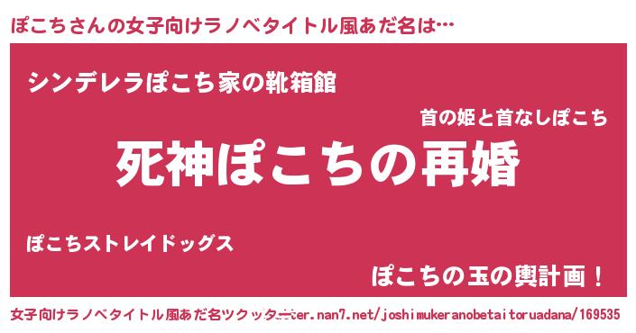 | 男性向けラノベタイトル風あだ名 | 『ノーゲーム・ノーポコチ』 |