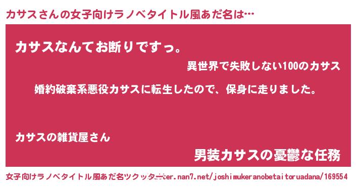 | 男性向けラノベタイトル風あだ名 | 『カサススレイヤー』 |