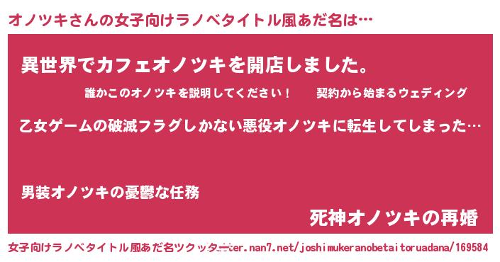 | 意味不明あだ名 | 『住所不定無職オノツキ(50歳)』 |
