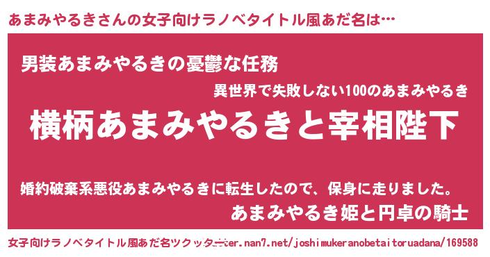 | 胡散臭い通販商品みたいなあだ名 | 『億万長者になれる水晶球…その名も「あまみやるき」』 |