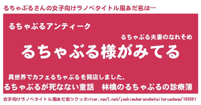 | 意味不明あだ名 | 『とにかく怪しいるちゃぶる』 |