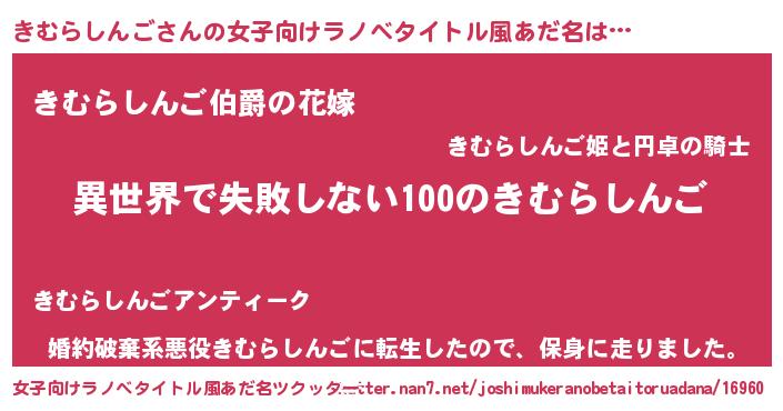 | 男性向けラノベタイトル風あだ名 | 『きむらしんごという概念が存在しない退屈な世界 』 |
