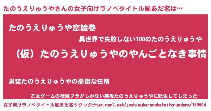 | 胡散臭い通販商品みたいなあだ名 | 『必ず成功するブレスレット…その名も「たのうえりゅうや」』 |