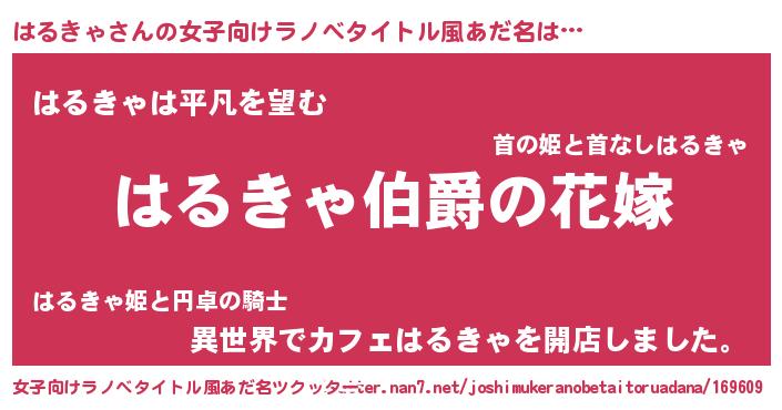 | 男性向けラノベタイトル風あだ名 | 『やはりはるきゃの青春ラブコメはまちがっている 』 |