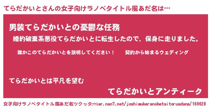 | 男性向けラノベタイトル風あだ名 | 『テラダカイトアートオンライン』 |
