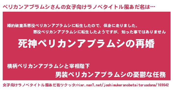 | 男性向けラノベタイトル風あだ名 | 『ノーゲーム・ノーペリカンアブラムシ』 |