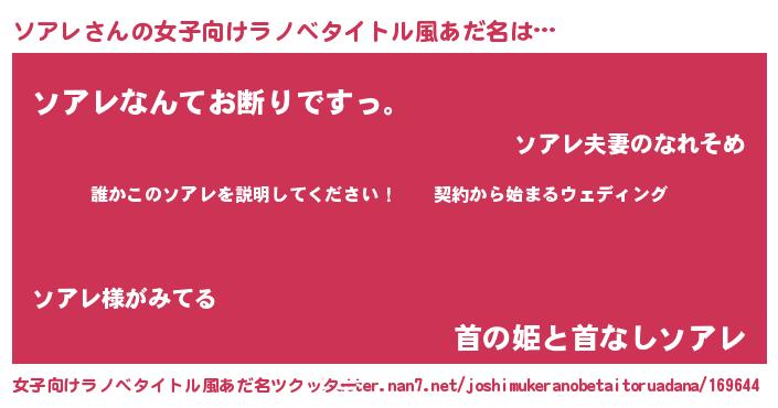 | 男性向けラノベタイトル風あだ名 | 『ソアレアートオンライン』 |