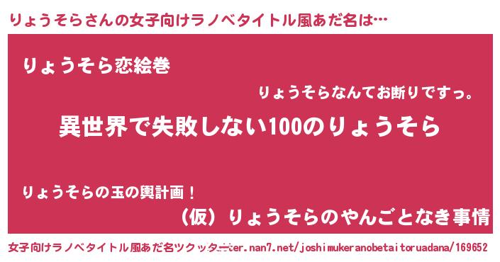 | 胡散臭い通販商品みたいなあだ名 | 『絶対に幸福をもたらす健康食品…その名も「りょうそら」』 |
