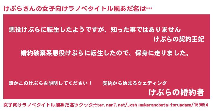 | 男性向けラノベタイトル風あだ名 | 『ケプラスレイヤー』 |