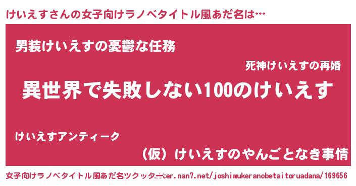 | 意味不明あだ名 | 『永久保存けいえす』『ペロリンけいえす』 |