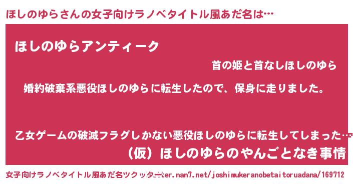 | 料理風あだ名 | 『ほしのゆらごはん』 |