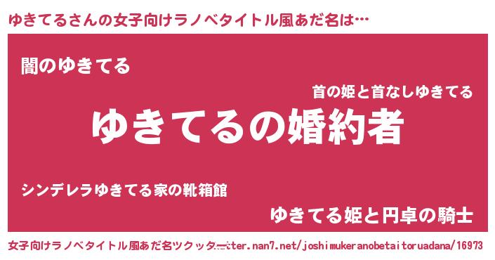 | 胡散臭い通販商品みたいなあだ名 | 『運命の人と巡り会える高級そうな壺…その名も「ゆきてる」』 |