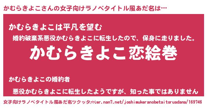 | ヒーロー風カッコイイあだ名 | 『愛の使者かむらきよこ』『魔戒騎士カム』 |