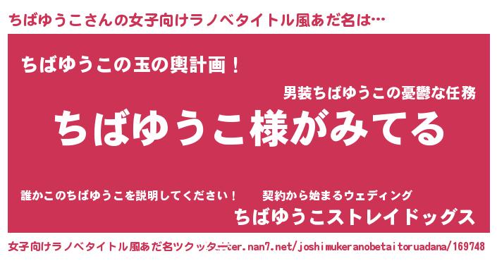 | 伝説のあだ名 | 『覚醒した遊び人ちばゆうこ』 |