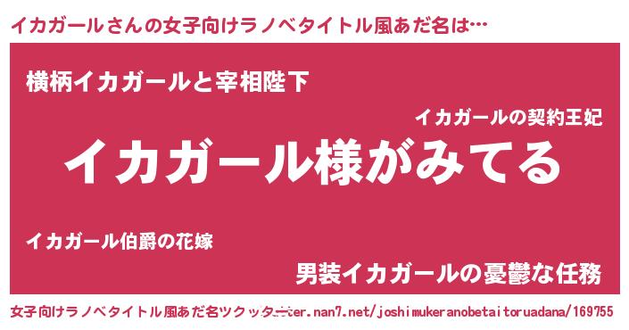 | 男性向けラノベタイトル風あだ名 | 『イカガールの嫁は女の子じゃないと思った?』 |