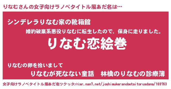 | 男性向けラノベタイトル風あだ名 | 『ノーゲーム・ノーリナム』 |