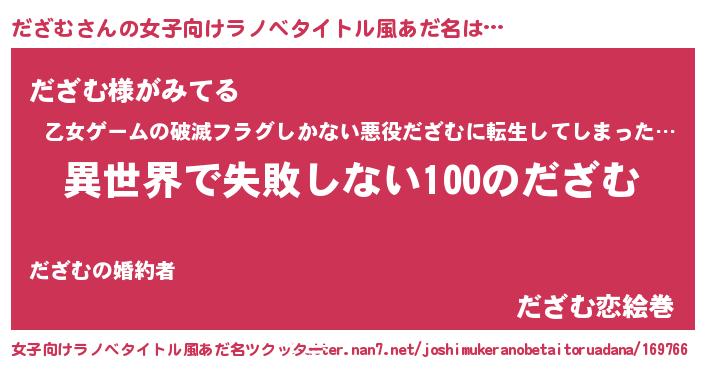 | 男性向けラノベタイトル風あだ名 | 『だざむという概念が存在しない退屈な世界 』 |
