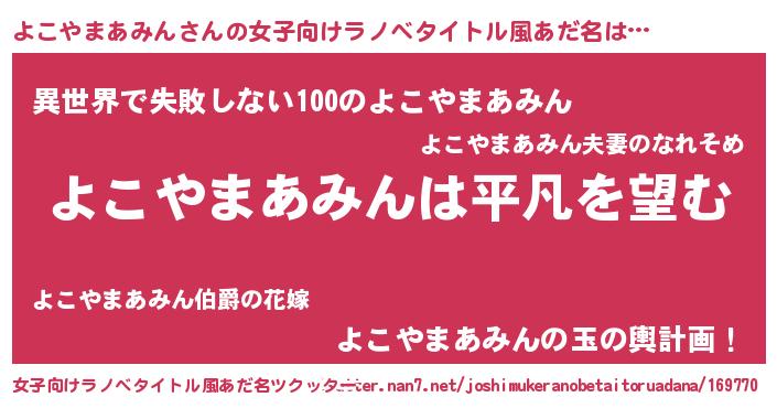 | 胡散臭い通販商品みたいなあだ名 | 『信頼と実績のネックレス…その名も「よこやまあみん」』 |