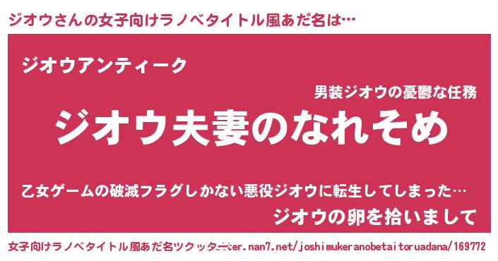 | 男性向けラノベタイトル風あだ名 | 『おまえをオタクにしてやるから、俺をジオウにしてくれ! 』 |