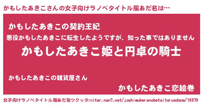 | 男性向けラノベタイトル風あだ名 | 『かもしたあきこの憂鬱』 |