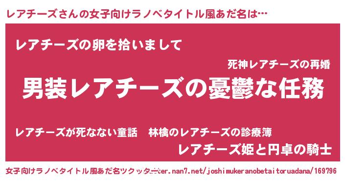 | 胡散臭い通販商品みたいなあだ名 | 『全米が絶賛したサプリメント…その名も「レアチーズ」』 |