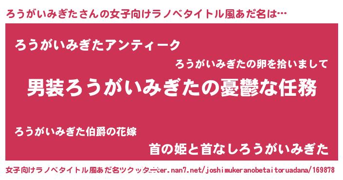 | 恥ずかしいあだ名 | 『ロウガイミギタデラックス』『ろうちん』 |