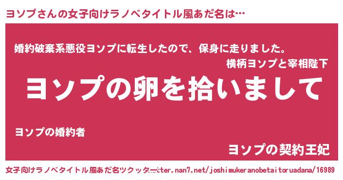 | 意味不明あだ名 | 『とにかく怪しいヨソプ』『自称ヨソプ』 |