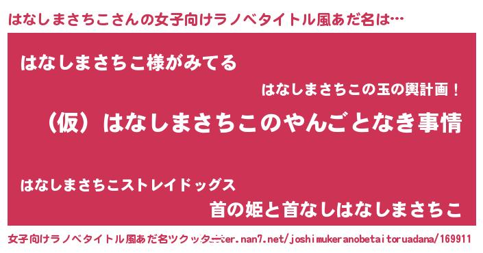 | 胡散臭い通販商品みたいなあだ名 | 『必ず成功するブレスレット…その名も「はなしまさちこ」』 |