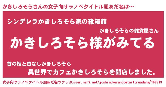 | 男性向けラノベタイトル風あだ名 | 『かきしろそらの嫁は女の子じゃないと思った?』 |
