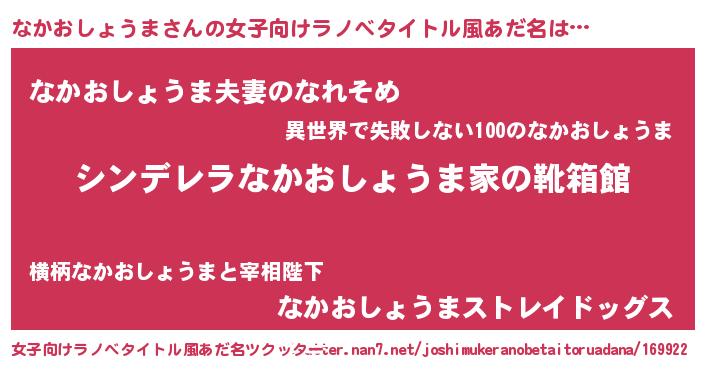 | 男性向けラノベタイトル風あだ名 | 『緋弾のナカオショウマ』 |