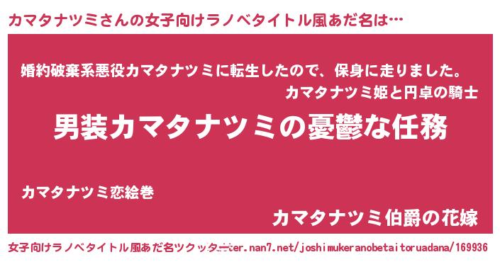 | 男性向けラノベタイトル風あだ名 | 『冴えないカマタナツミの育てかた』 |