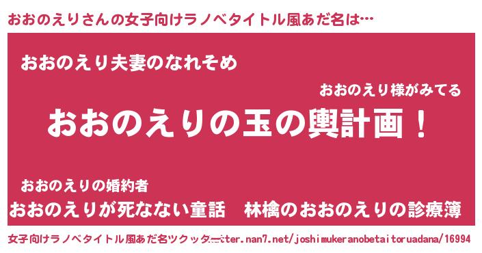 | 男性向けラノベタイトル風あだ名 | 『おおのえり~年齢イコール彼女いない歴の魔法使い~』 |