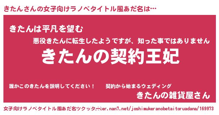 | 男性向けラノベタイトル風あだ名 | 『きたんという概念が存在しない退屈な世界 』 |