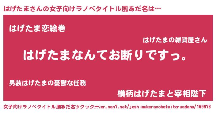 | ヒーロー風カッコイイあだ名 | 『超時空戦士ハゲタマ』『黄金騎士ハゲ』 |