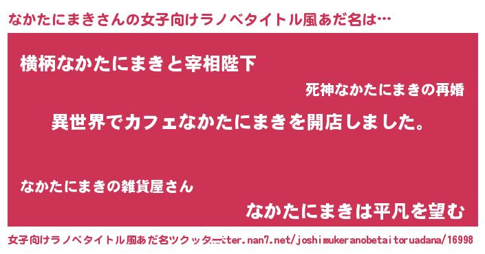 | ヘコむあだ名 | 『なかたにまき(遠い目)』『なか太郎』 |