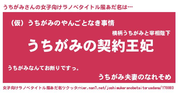 | 恥ずかしいあだ名 | 『うちちん』『プリティーうちがみ』 |
