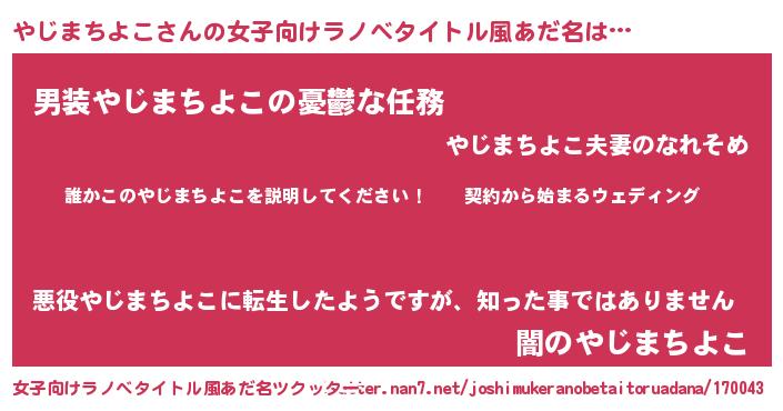 | 男性向けラノベタイトル風あだ名 | 『ヤジマチヨコアートオンライン』 |