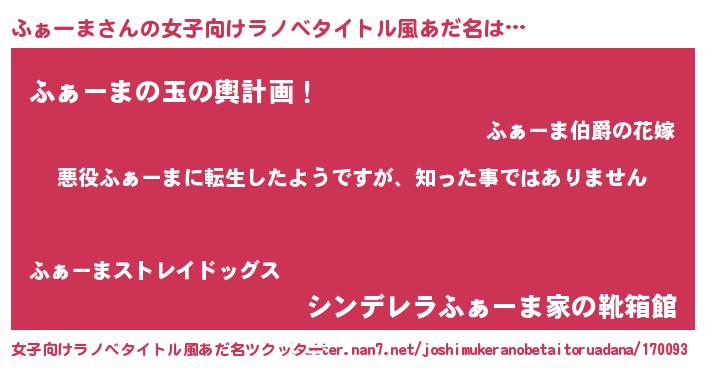 | 意味不明あだ名 | 『住所不定無職ふぁーま(11歳)』 |