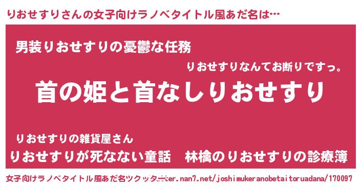 | 欧米人風あだ名 | 『アンジェラ・りおせすり』 |