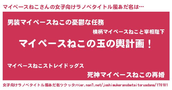| 男性向けラノベタイトル風あだ名 | 『マイペースねこ~年齢イコール彼女いない歴の魔法使い~』 |